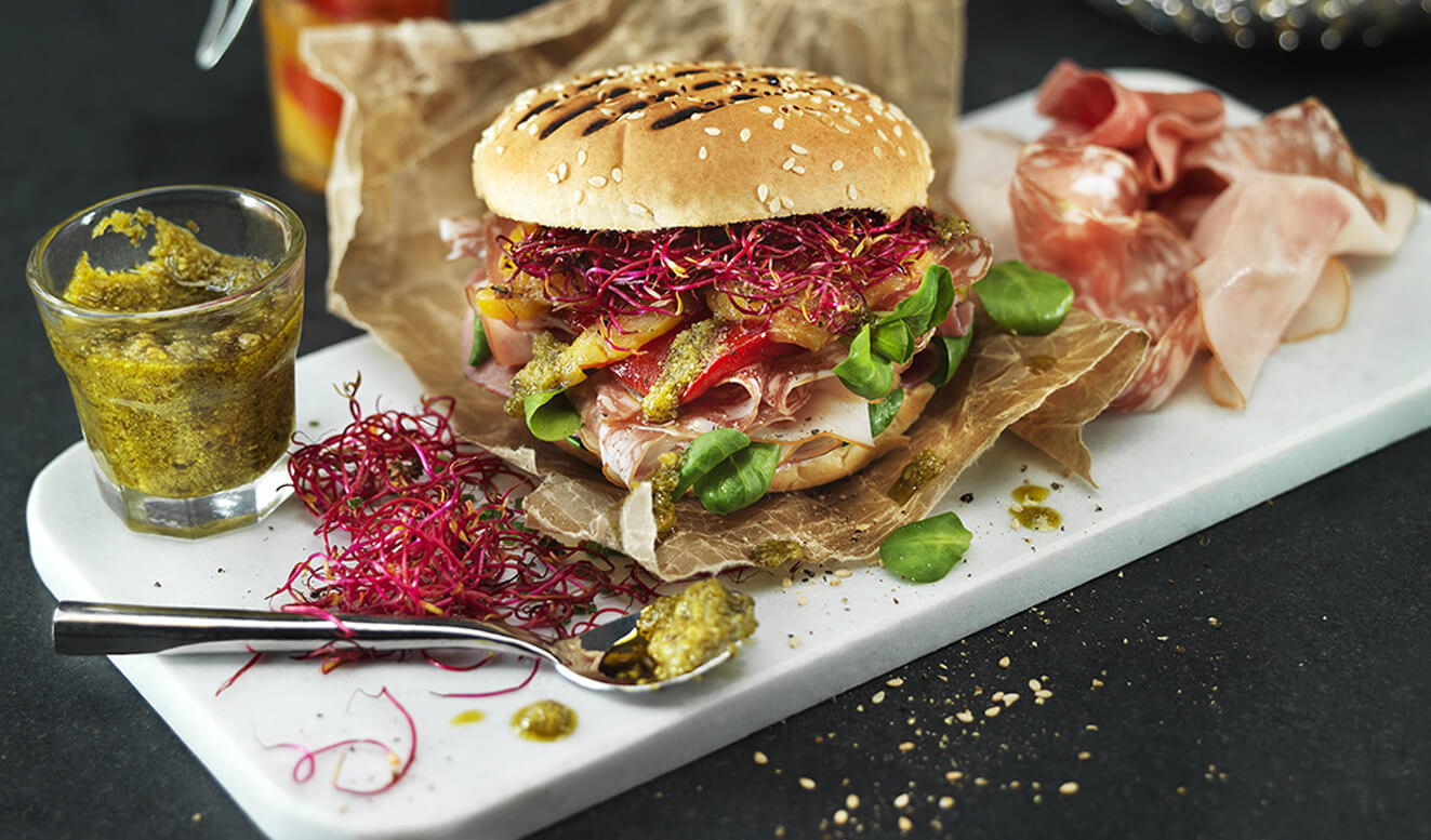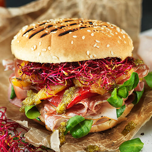 Wheat flour, water, sugar, rapeseed oil, yeast, sesame seeds, scalded oat, wheat sourdough, salt, vegetable emulsifier (mono- and diglycerides